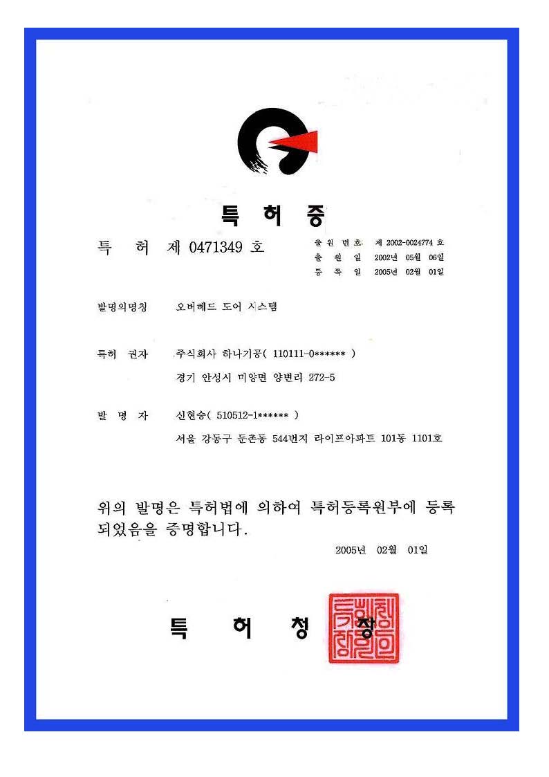 특허) 오버헤드도어 시스템
