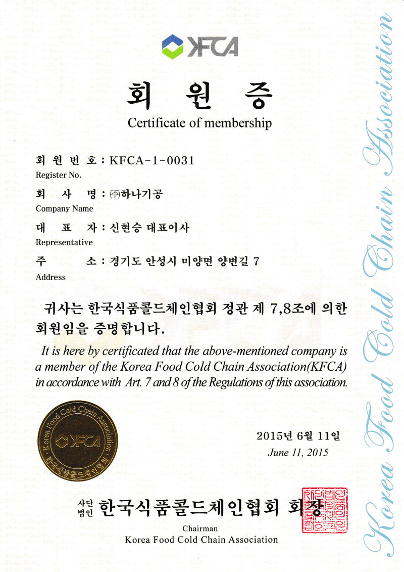 한국식품콜드체인협회 회원증